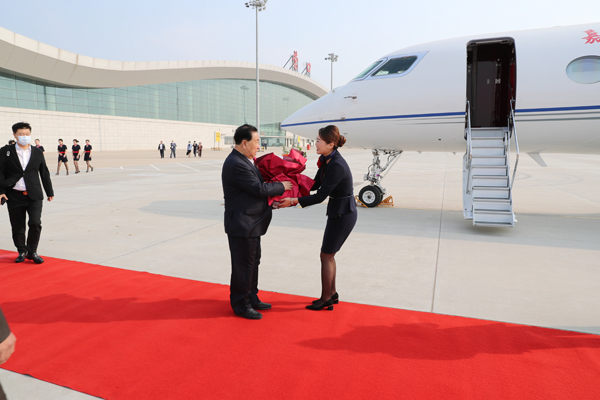 4月30日7時30分,嘉晨集團董事長孫壽寬先生及隨行人員乘車抵達營口蘭旗機場,開啟了嘉晨集團首架公務機(灣流650型)首航之旅。在完成安檢流程后,孫壽寬董事長一行緩步走向停機坪,機組人員向董事長及隨行人員親切握手,敬獻鮮花并合影留念。8時飛機準時起飛。此次飛行將在一天內抵達中國東部及南部多座城市,以公務機的靈活便捷優(yōu)勢為嘉晨集團業(yè)務版圖擴展提供強大動力。