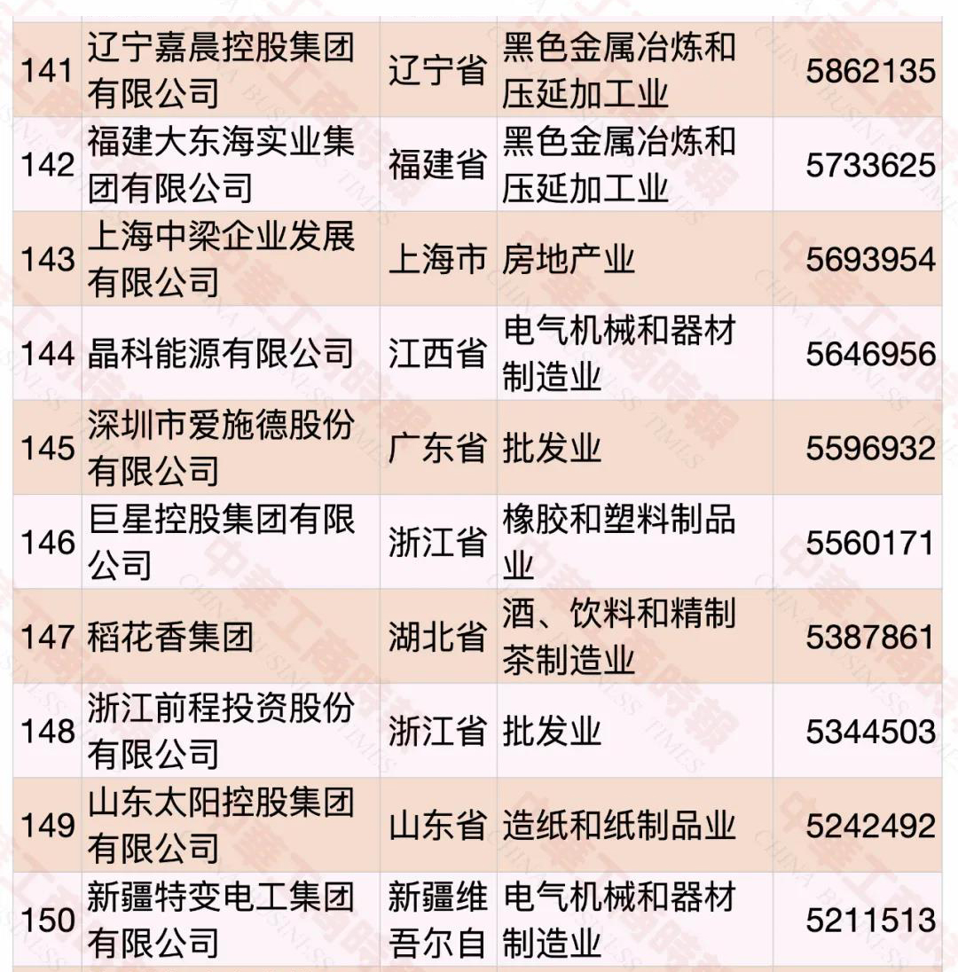 嘉晨集團在2020中國民營企業(yè)500強排名141位