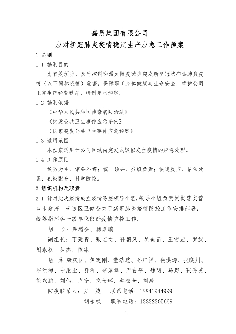 嘉晨集團應(yīng)對新冠肺炎疫情穩(wěn)定生產(chǎn)應(yīng)急工作預(yù)案